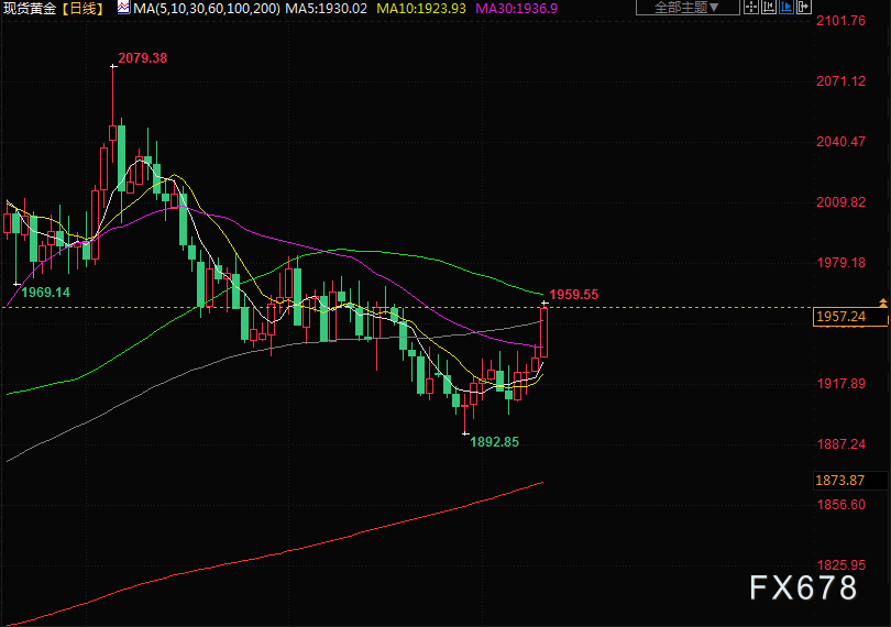 独立金属交易商Tai Wong表示,“CPI数据低于预期,黄金跃升10美元,市场希望7月加息可能是本轮加息周期中的最后一次。如果黄金能向上突破50日移动均线1960美元,将推动更多看涨押注。”