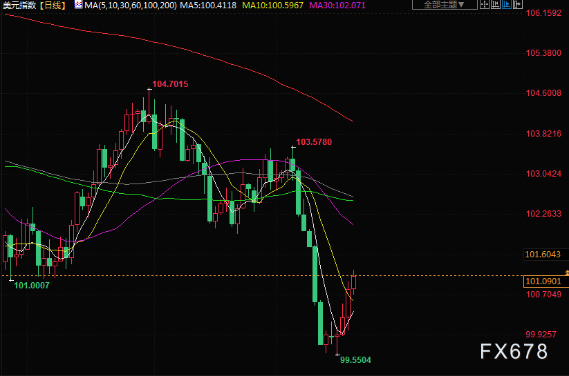 追踪美元兑六种主要货币的美元指数上涨0.30%,至101.06,本周上涨1.14%,创两个月来最大周线涨幅。欧元兑美元下跌0.05%,至1.1123美元。英镑兑美元连续第六日下跌,为去年9月以来持续时间最长的一轮连跌,纽约盘尾下跌0.07%,报1.2859美元。