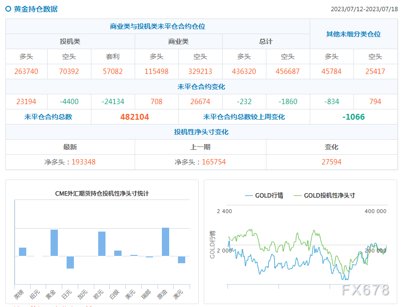 能源方面:截至7月18日当周,美原油期货投机性净多头头寸增加46701手,至152812手;截至7月18日当周,NYMEX、ICE市场的天然气期货净多头寸减少20150手至56851手。
