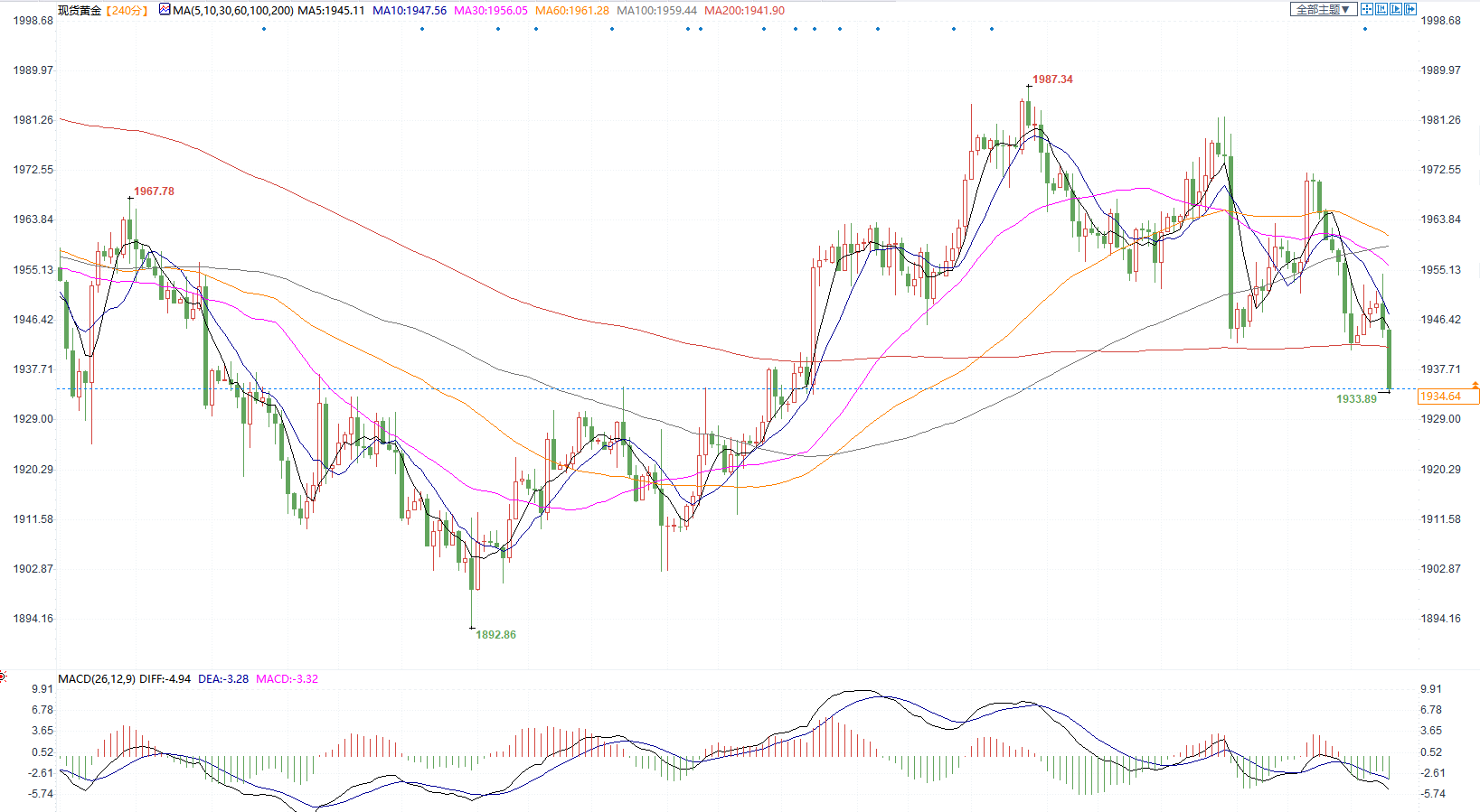 北京时间23:17 现货金价报1935美元/盎司。
