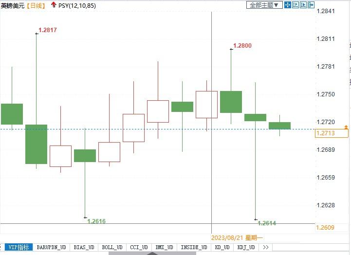 英镑兑美元日线图北京时间8月24日11:07,英镑兑美元报1.2714/15