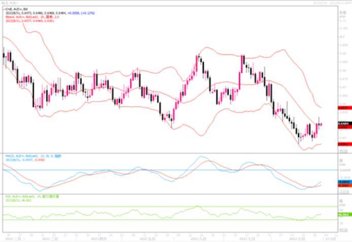 周三(8月30日),澳元兑美元下跌0.09%,收盘在0.6475元,缩减了隔夜因美国就业数据意外下滑压低美元而录得的0.8%涨幅。数据显示,澳洲7月消费者物价指数(CPI)同比增长4.9%,低于上月的5.4%和市场预期的5.2%。核心通胀指标有所上升,但升速放缓,这促使市场加大对澳洲央行已完成加息的押注。利率期货价格已经几乎排除了澳洲央行在下周举行的9月会议上提高目前为4.1%的现金利率的可能性,现在暗示年底前加息的可能性只有36%。通胀急剧下降证实了澳洲央行已经结束了政策紧缩,并提高了该央行比大多数人预期更早开始放松政策的可能性。从上周情况来看,澳元/美元一直坚守0.64水平之上,日线图上的MACD技术指标有形成金叉迹象,RSI也自超卖区域开始拐头向上,显示有筑底反弹倾向。当然了,澳元的走势路径,还要取决于美联储的货币政策及其预期方向。此外,还要考虑其与大宗商品市场和全球经济增长的密切关系。因此影响澳元的因素构成还是比较复杂的。留意本周来自美国的重要数据,若数据不及预期,料澳元或能获机延续反弹的走势。