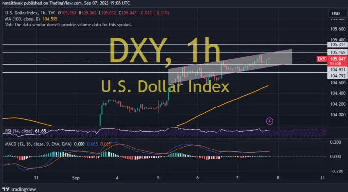 周五(9月8日)亚市盘中,美元指数短线突然一波跳水,最低触及104.85附近,跌幅约0.2%,回吐了隔夜大部分涨幅。知名财经网站FXDailyReport分析师Nicholas Kitonyi最新撰文,对美元后市走势进行分析。