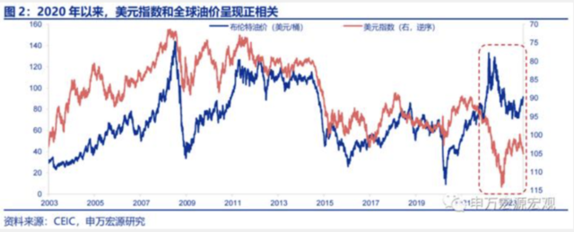 申万宏源表示,在2020年之后,过去几十年美元指数和原油价格的反向关系已经逐步变为正相关,即油价越高,美元指数越强。如果全球油价还有上涨空间,那么美元指数就还能够继续走强。而OPEC最新预计,四季度全球原油供应短缺超300万桶/日,意味着油价或继续走强。