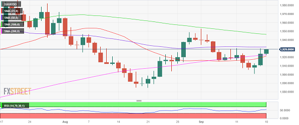 然而,黄金买家需要突破强大阻力位1932美元/盎司,即50日移动均线,以确认从三周低点的看涨反转。