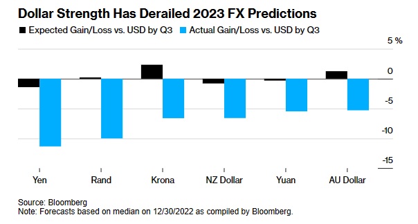 自今年7月以来,美元的反弹幅度令人惊叹。在过去两个月里,美元兑几乎所有主要货币都大幅升值。美元空头被美国经济令人惊讶的弹性以及随之而来的持续通胀打了个措手不及。