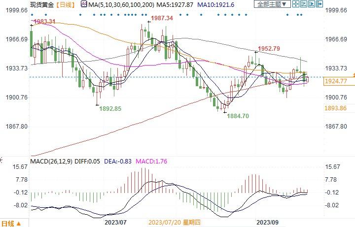 现货黄金日线图北京时间9月22日16:11,现货黄金报1926.70美元/盎司