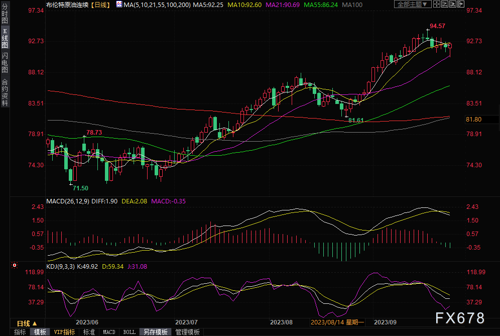 截至发稿,布伦特原油期货收涨0.58美元/桶,涨幅0.63%,收报92.44美元/桶。