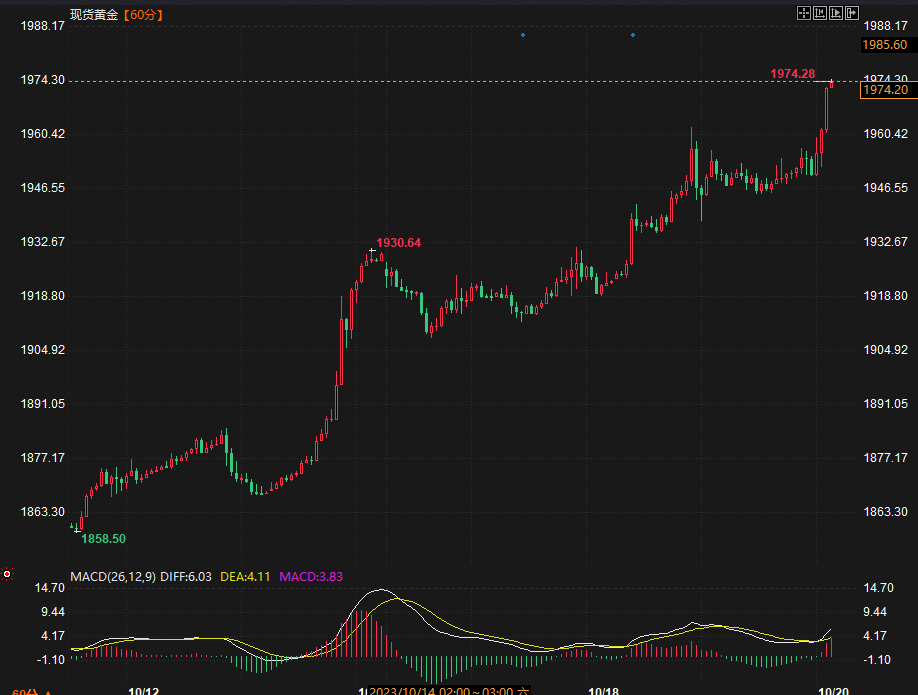 截至发稿,现货黄金上涨1.25%至1,971.78美元/盎司 。为7月31日以来首次上破1970关口。