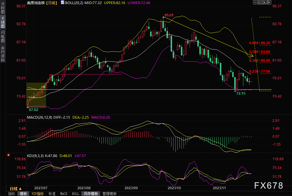 WTI 1月原油期货收跌0.68美元/桶,跌幅0.90%,报74.86美元/桶。