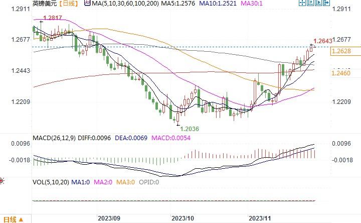 英镑兑美元日线图北京时间11月28日14:50 英镑兑美元 报 1.2628/29