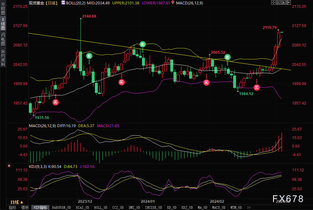 ——周二(3月5日)亚洲时段,现货黄金窄幅震荡,目前交投于2115.45美元/盎司附近;金价周一触及三个月最高2119.79美元/盎司,12月4日触及的历史高点在2135.40美元,受对美联储6月降息的押注增加推动。