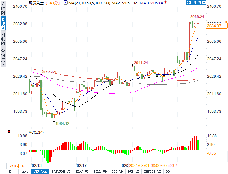 ——在3月4日的欧洲交易时段,现货黄金价格延续强劲的走势,当前金价位于2085美元/盎司附近。本周黄金市场的主要焦点将集中在美联储主席鲍威尔在国会的证词以及美国非农就业报告的发布上,这两大事件预计将引发市场的重大波动。