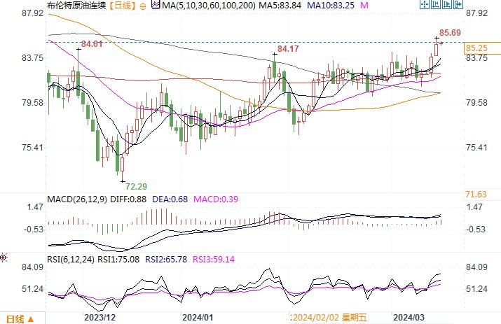 布伦特原油连续日线图来源:易汇通北京时间3月15日10:31 布伦特原油连续 报 85.25 美元/桶