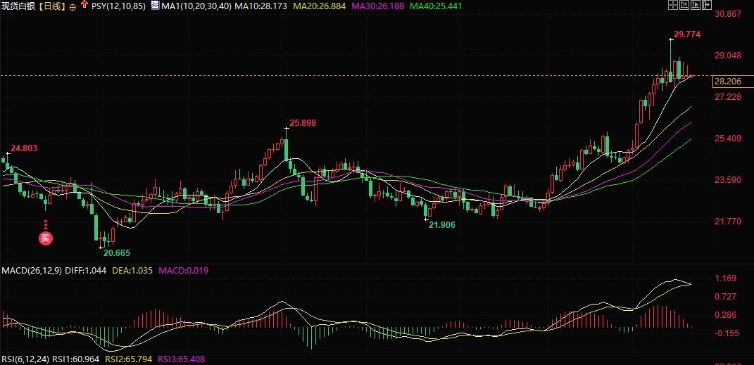 现货白银日线图北京时间4月19日9:02,现货白银报28.26美元/盎司