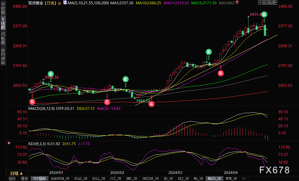 美国期金收低2.8%,结算价报2346.4美元/盎司。