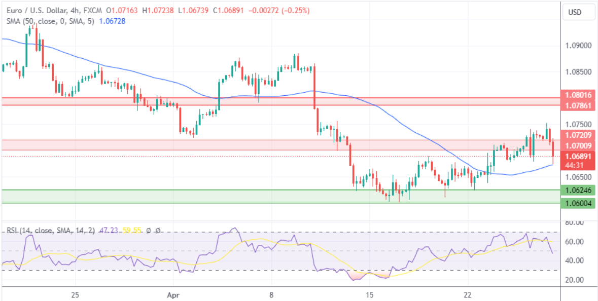 如果欧元/美元跌破50移动平均线1.0672,它将向下一个支撑位移动,该支撑位位于1.0600–1.0625范围内。