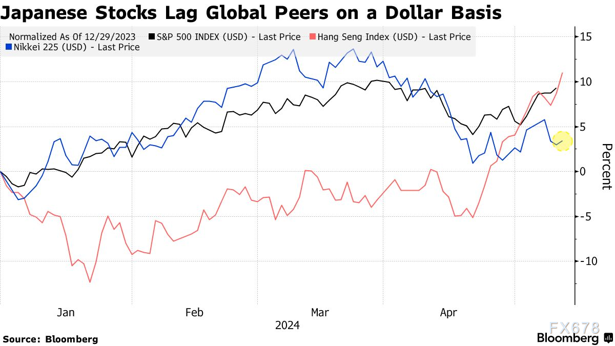 ——根据贝莱德日本主动投资主管Yue Bamba的说法,尽管日经225指数在本年度以日元计算上涨了14%,但以美元计算仅上涨了3%。这种差异主要归因于美元/日元汇率升至34年来的高点,导致以美元为基础的投资者在日本股市获得的回报大幅缩水。