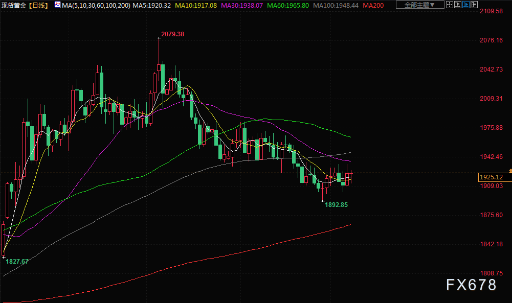 Kitco高级分析师JimWyckoff表示:“从技术图表上看,金价在1900美元得到了一些强有力的支撑。如果通胀持续高热不退,金价可能跌破该水平,或将迅速跌至1,848美元的水平。”
