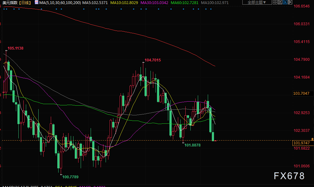午后交易中,美元指数下跌0.3%,至101.98,为三周最低。欧元兑美元一度升至三个月来最高的1.0997美元,纽约盘尾报1.0995美元,上涨0.2%。美元兑日元一度触及141.32的6月21日以来最低,盘尾下跌0.6%,报141.335日元。上周五,在数据显示美国6月非农就业岗位增加20.9万个,15个月来首次低于市场预期后,美元兑日元下跌近1.3%。