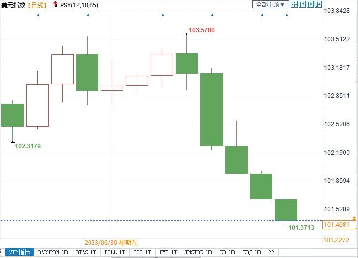 美元指数日线图北京时间7月12日11:31,美元指数报101.41
