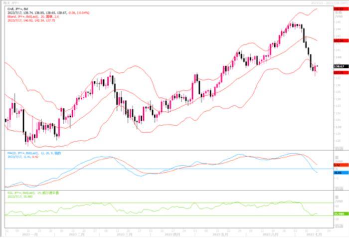 上周五(7月14日)美元兑日元略上涨0.5%,报138.805,但将创下1月份以来最差单周表现。有关日本央行将在本月调整货币政策的猜测升温,导致套利交易的获利回吐,叠加美元因加息周期将至尾声的下跌,是推动上周日元出现连续回升行情的主要影响因素。而且通过观察,今年以来,利差每日涨跌与美元兑日元汇率每日变动之间的相关性高达97%。因此只要日本央行在货币政策上继续不作为,那么日元似乎也难以回到从前的正常水位。考虑到本月美联储加息概率仍高,因此要谨慎防范美元/日元空头回补的风险。在月底美联储利率会议前,该货币对大概率主要震荡于137-141区间内。