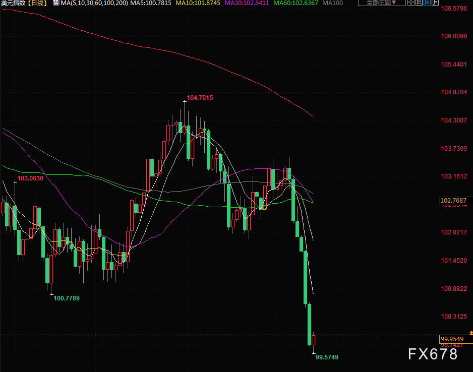 美元在过去几天大幅下跌后上周五反弹,因投资者在周末前整固损失,但美元走势仍倾向于下行,因在通胀走软的情况下美联储被认为已接近加息周期尾声。美元兑一篮子六种主要货币仍创下11月份以来的最大单周跌幅。美元指数上涨0.2%,报99.923点,稍早触及15个月低点99.574。该指数本周下跌2.3%。
