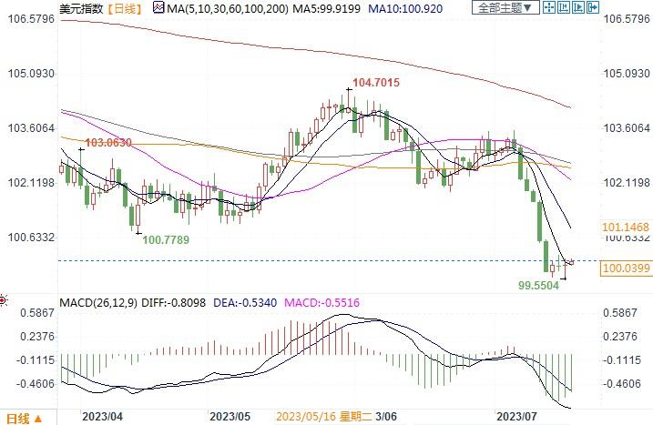 美元指数日线图北京时间7月19日13:00,美元指数报100.07