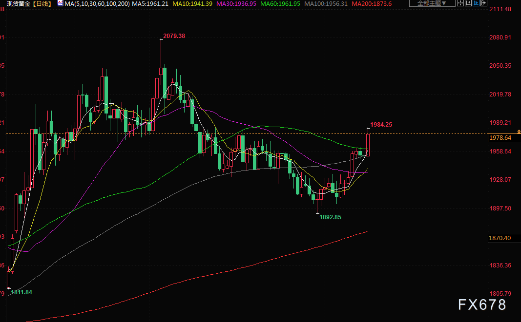 Kitco高级市场分析师Jim Wyckoff表示,“如果新的数据暗示美联储在本月再加息一次后将暂停行动,那么黄金肯定会向2000美元迈进。”