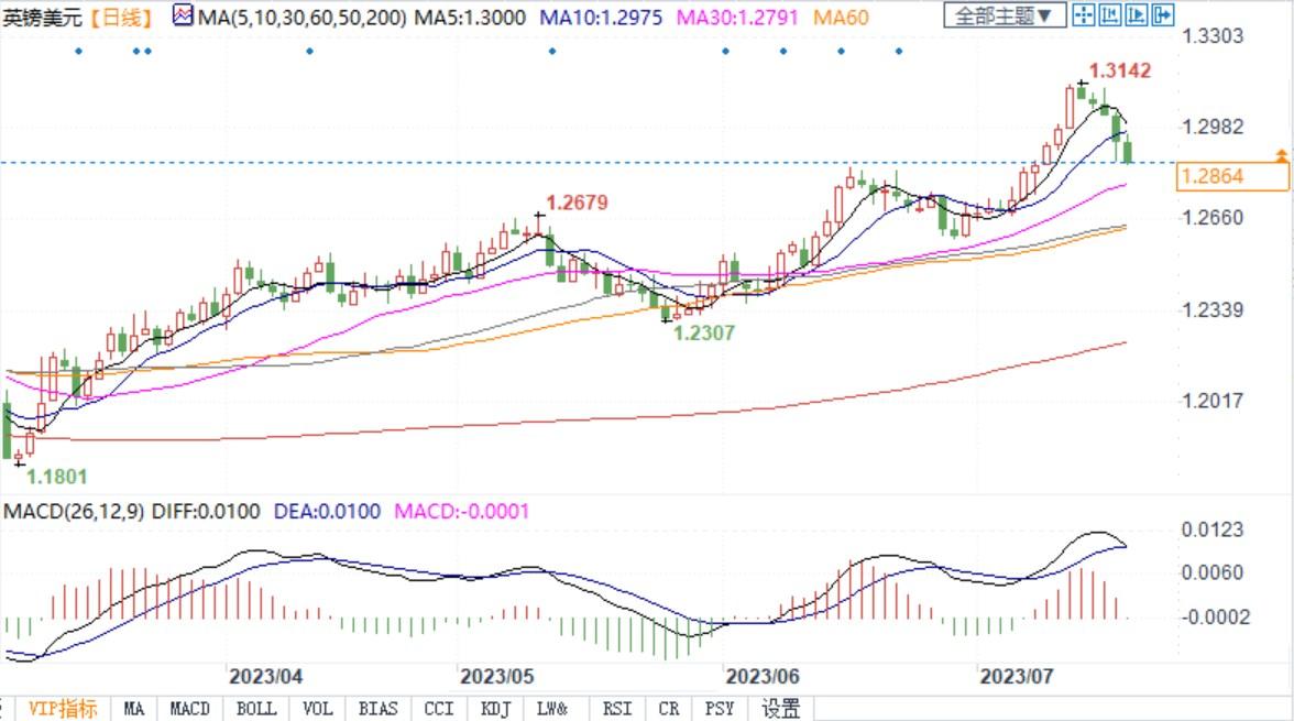 英镑兑美元日线图北京时间7月20日21:50,英镑兑美元报1.2865/66