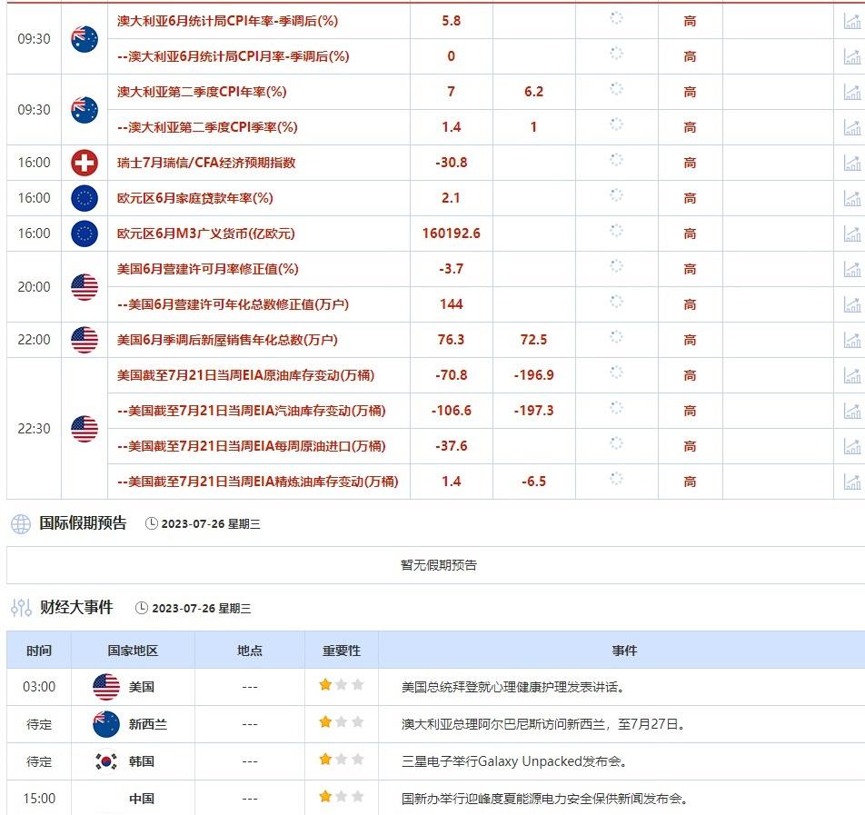 CME“美联储观察”:美联储7月维持利率在5.00%-5.25%不变的概率为0%,加息25个基点至5.25%-5.50%区间的概率为99.6%,加息50个基点至5.50%-5.75%区间的概率为0.4%;到9月维持利率不变的概率为0%,累计加息25个基点的概率为78.7%,累计加息50个基点的概率为21.3%,累计加息75个基点的概率为0.1%。周二欧元兑美元连续第六个交易日下跌,收跌0.12%,报1.1050,因为欧洲经济放缓的证据与日俱增。最近的一项调查显示,欧元区第二季度贷款需求创下了历史新低,而且另有数据显示德国7月企业信心下降。周一出炉的欧元区采购经理人指数(PMI)低于预期,令人失望。