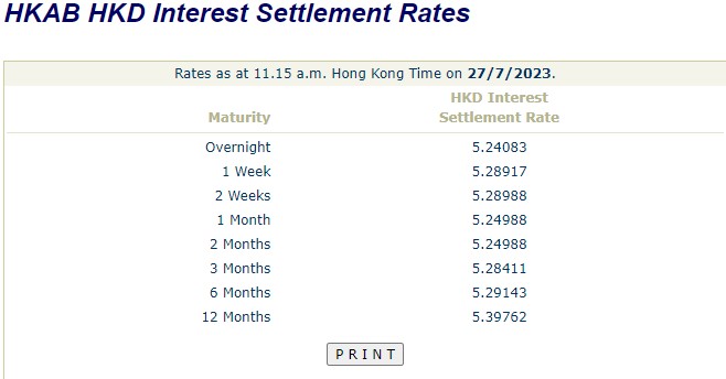 7月27日,港元拆息全线向上,与楼按相关的1个月拆息连升两日,升至5.24988%,创自2007年10月以来新高。短息方面,隔夜拆息升至5.24083%;一星期拆息升至5.28917%;两星期拆息升至5.28988%。中长息方面,3个月拆息升至5.28411%;6个月拆息升至5.29143%;1年期拆息升至5.39762%。
