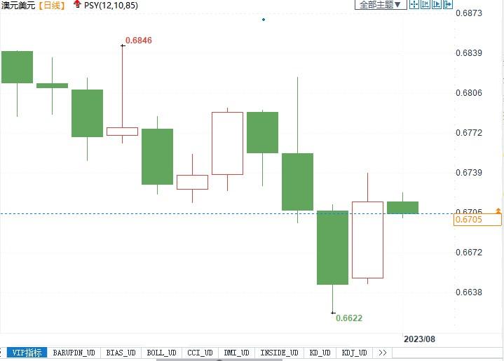 澳元兑美元日线图北京时间8月1日9:57,澳元兑美元报0.6703/04