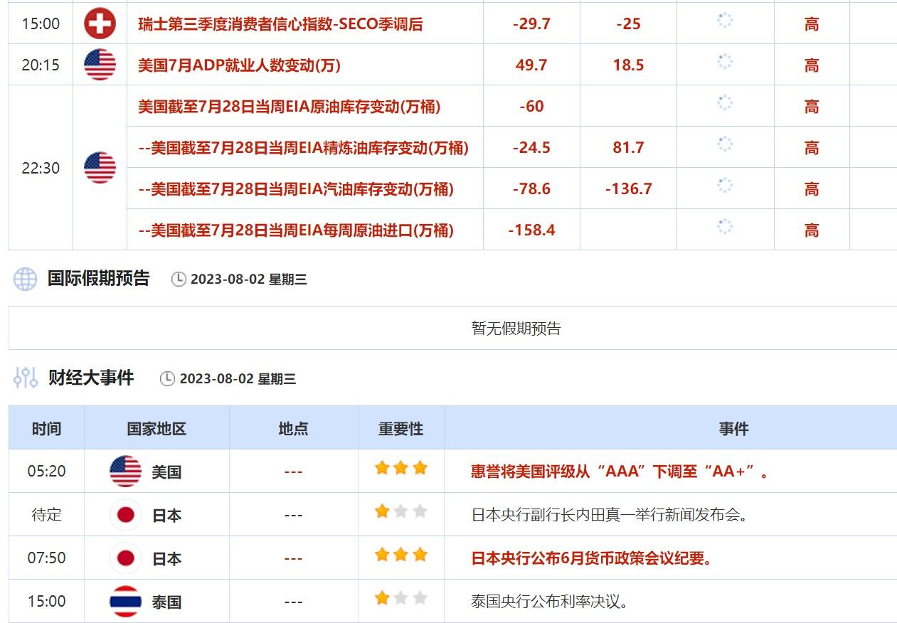 当地时间周二收盘后,国际评级机构惠誉宣布将美国的信用评级从“AAA”下调至“AA+”;并预测美联储9月还将加息。