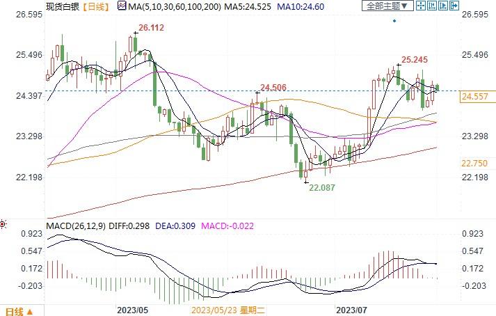 现货白银日线图北京时间8月1日13:37,现货白银报24.57美元/盎司