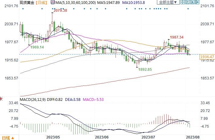 现货黄金日线图北京时间8月3日11:35,现货黄金报1936.24美元/盎司
