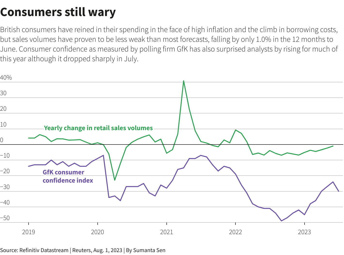 根据民调公司GfK的数据,7月消费者信心指数从6月的17个月高点回落。仍然低于过去10年的大部分时间的水平。家庭负债率低于2007-2009年全球金融危机前的高点。