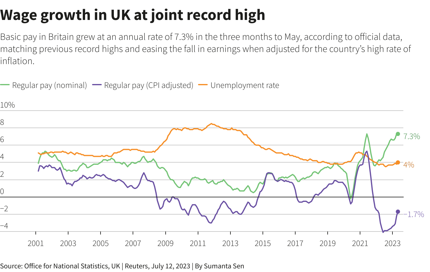 数据显示,截至5月的三个月,英国不包括奖金在内的工资较上年同期增长7.3%,与记录上的最高增长率齐平。[nL6S38X06M]