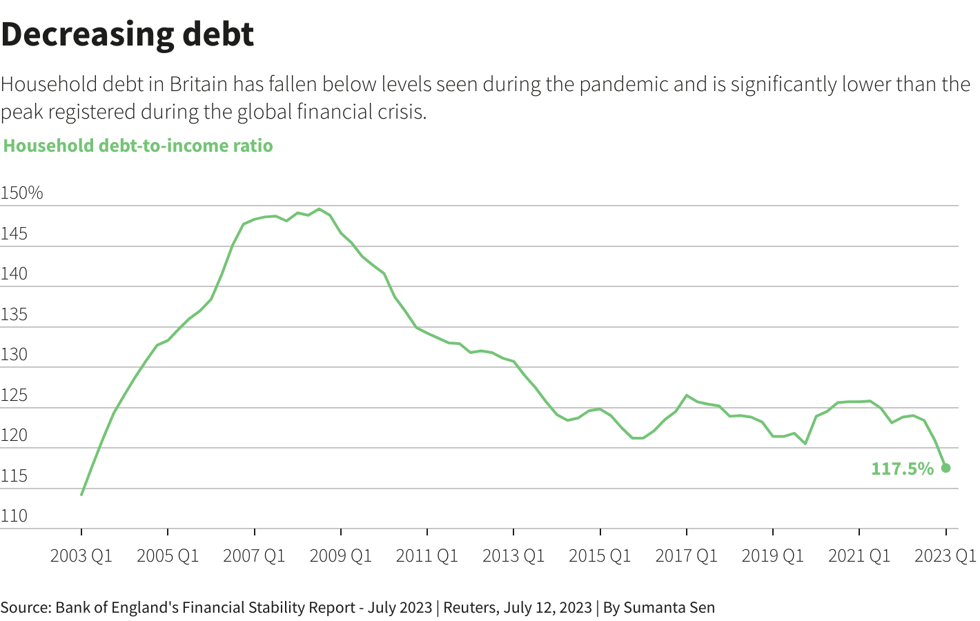 许多人手里仍然有一些疫情期间攒下来的积蓄。2023年初,衡量家庭储蓄收入(包括雇主的养老金缴款)占可支配收入比例的储蓄率为8.7%,低于2022年底的9.3%,但高于疫情爆发前的5.6%。