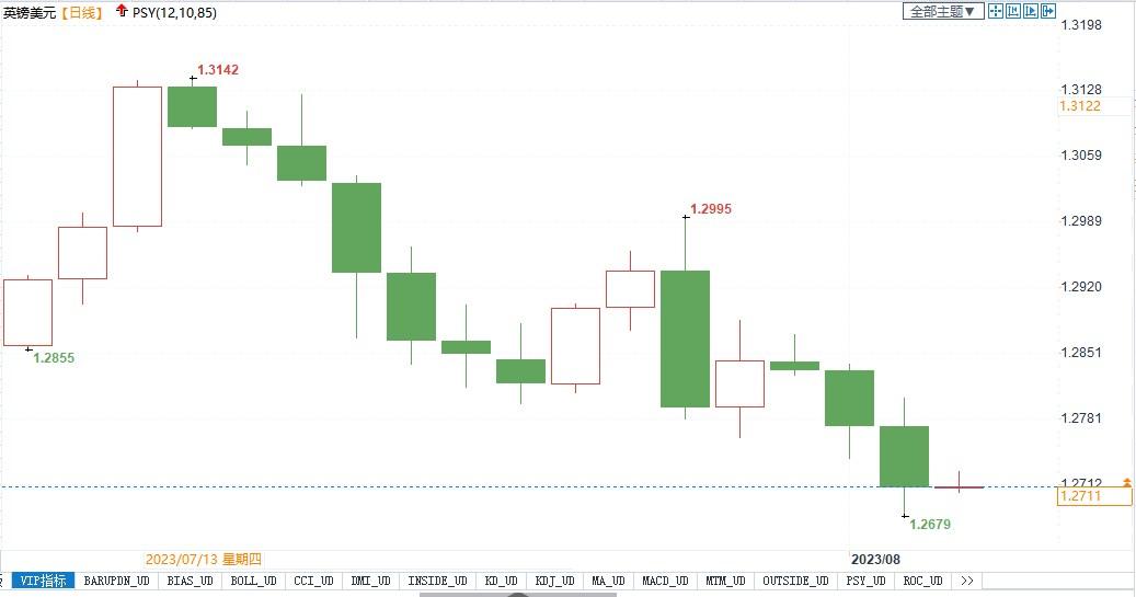 英镑兑美元日线图北京时间8月3日11:12,英镑兑美元报1.2711/12