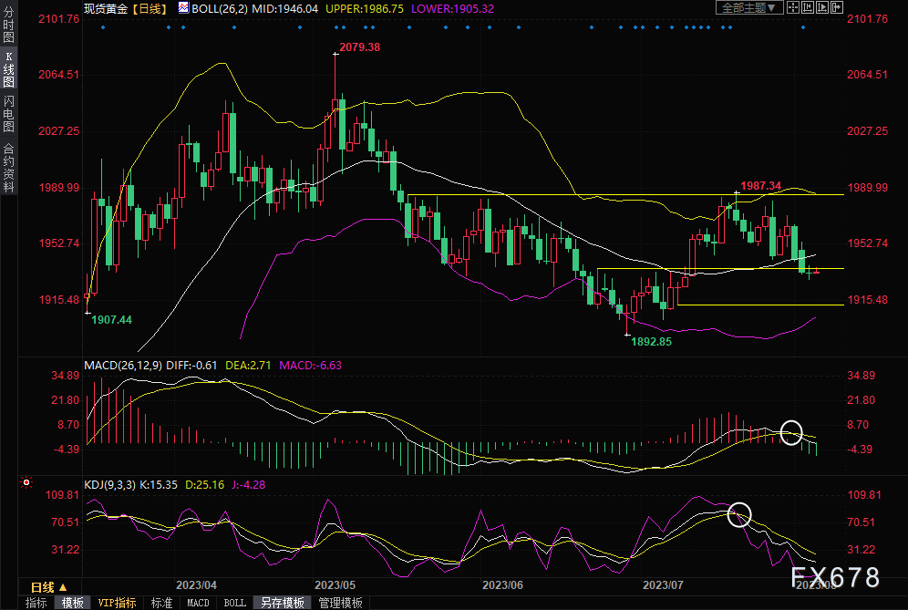 整体来看,市场对美国非农数据的预期比较乐观,美债收益率维持强势,美元指数也留有进一步走高机会,而黄金技术面信号依然偏向空头,投资者需要提防金价的进一步下行风险,短线留意1920关口和7月10日低点1912.57附近支撑;上方继续关注55日均线和布林线中轨的双重阻力1946.05附近位置压力。