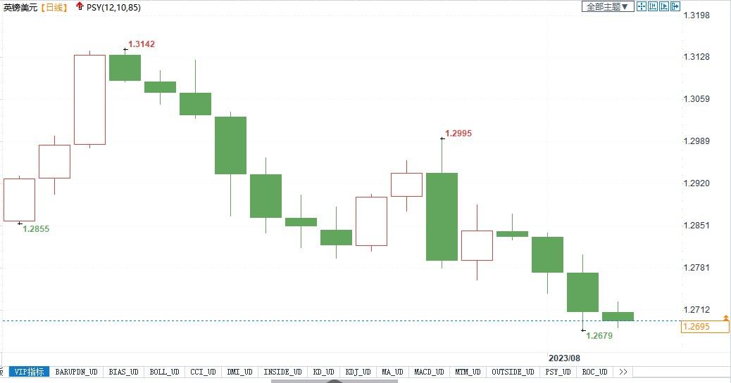 英镑兑美元日线图北京时间8月3日15:21,英镑兑美元报1.2696/97