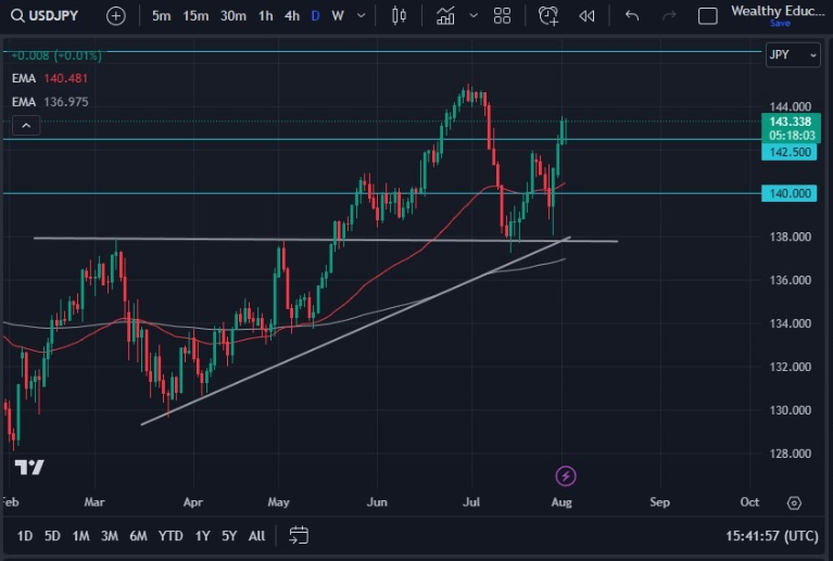 在喧闹的市场行为中,“逢低买入”策略似乎对交易者有利。50日均线位于140.50日元附近并正在上升,正在增强支撑结构。如果市场能够突破145.50日元的水平,那么它可能会继续向150日元的水平迈进。然而,这个水平可能代表一些阻力。日元突破150表明美元走强。