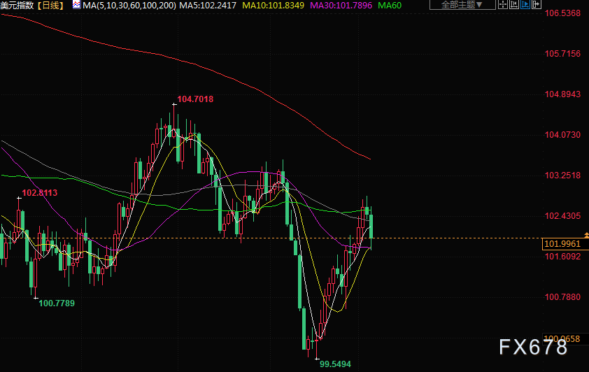 衡量美元兑六种主要货币汇率的美元指数下跌0.459%,录得三周来最大单日跌幅。美元在周四攀升至102.84,为7月7日以来最高。