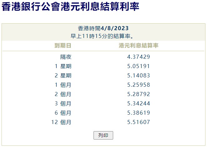 XM外汇官网跟单资讯-HIBOR连续两日全线下跌 隔夜拆息报4.37%