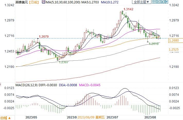 英镑兑美元日线图北京时间8月14日13:50,英镑兑美元报1.2682/95