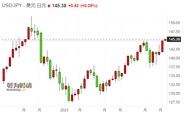 汇丰银行预计日本政府将会在145-148区间内着手推升日元汇率。由于去年日元的明显疲软,日本当局曾三度出手干预汇市,9月时正是在日元跌破145关口、濒临146关口的情况下,当局对外汇市场进行了干预行动。