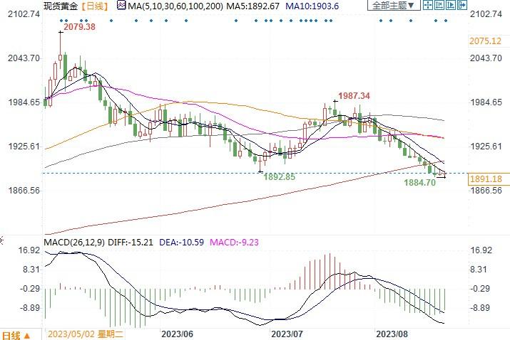 现货黄金日线图北京时间8月21日12:06,现货黄金报1891.18美元/盎司