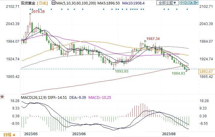 现货黄金日线图北京时间8月18日14:53,现货黄金报1892.67美元/盎司