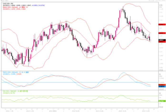 周二(8月22日),欧元兑美元收盘于1.0846,当日下跌了0.46%。自去年开启加息周期一来,欧央行已连续加息9次,加息幅度达到425各基点。对于后续的货币调整,欧央行开始向市场释放出开放而灵活的态度。事实上,根据欧盟统计局最新公布的通胀数也给到欧央行进行灵活调整货币政策的支持。最新通胀数显示,欧元区7月调和消费者物价指数(HICP)同比增长5.3%,低于六月份的5.5%,而去年同时期是8.9%。至此,欧元区HICP同比增速已经实现了连续3个月西江,从今年4月时的7%高位已出现明显的下降。因此有理由相信,欧央行在调整货币政策问题的态度将会比美联储更为谨慎。从欧央行行长拉加德到一众管委委员近期的发言都显示,欧央行自认为利率上调的幅度已经很小了,必须保持谨慎避免过度行动。因此,在本周杰克逊霍尔央行研讨会上,欧央行行长拉加德若发表出任何软化态度的讲话,恐怕会对欧元有负面的冲击。日线图上,欧元/美元继续受压中短期均线下方,技术指标也未有任何拐头迹象,显示欧元下行风险仍偏重。上方8月初低点1.0915成为初步阻力。下方则要密切留意1.08的支撑。